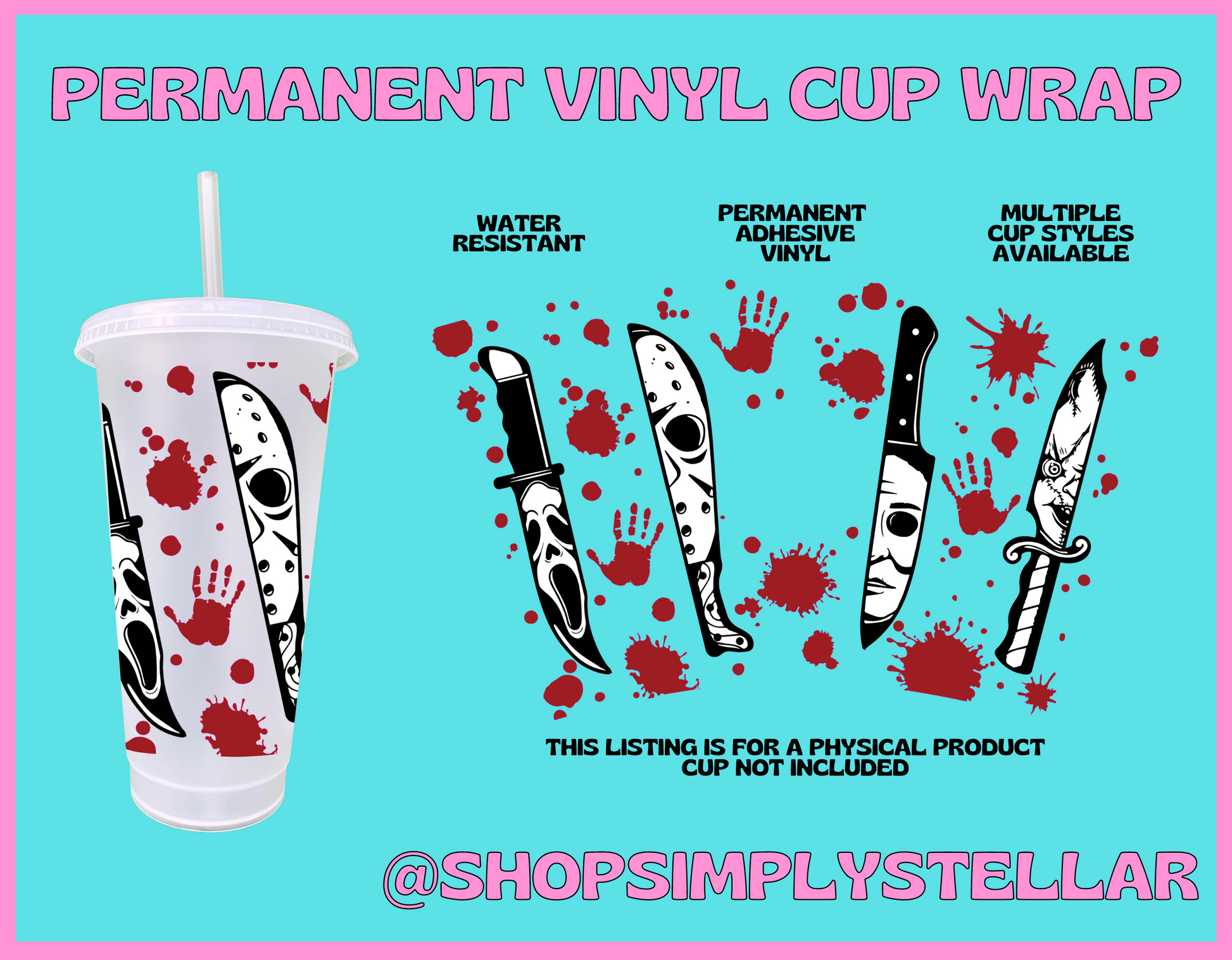 This listing is for ONE adhesive vinyl wrap (not a digital item!). Cup NOT included. All wraps will come pre-weeded. Transfer tape not included. Multiple sizes available.